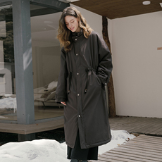 撞色翻领夹棉加厚中长款立裁H廓形包容藏肉长袖风衣女装外套Q172