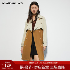 曼德诗拼接长款风衣女2023春季设计感复古长袖气质假两件宽松外套