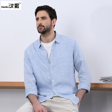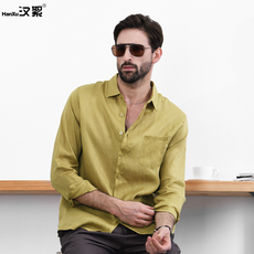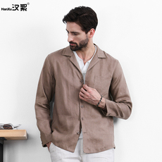 汉絮高级感纯亚麻长袖衬衫男款春季轻薄透气翻领宽松休闲麻料衬衣