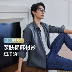 【莱赛尔】劲霸男装男士衬衣春夏时尚休闲亚麻透气长袖衬衫男