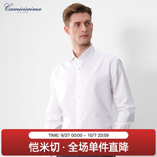 CULTUM春夏轻薄透气亚麻一片领衬衣意式休闲纯色长袖男士衬衫