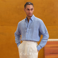 CULTUM意式水洗一片领亚麻衬衫男士长袖春夏舒适透气薄款休闲衬衣