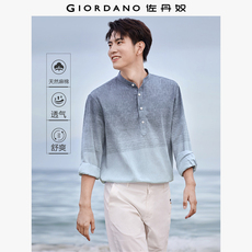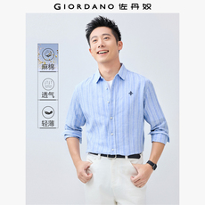 佐丹奴亚麻衬衫男新款棉麻透气线条刺绣男式长袖休闲衬衣01045462