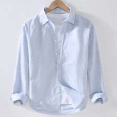 极麻日系小清新基础棉麻长袖衬衫男士休闲文艺宽松透气亚麻料衬衣
