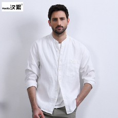 汉絮立领棉麻衬衫男士春季长袖文艺休闲上衣潮流宽松男装亚麻衬衣