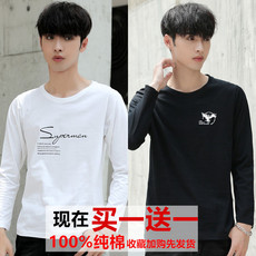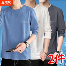 2件】男士长袖T恤学生圆领宽松纯棉薄款大码上衣服秋衣男装打底衫