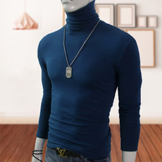 秋冬纯棉高领打底衫男士薄款保暖修身弹力长袖t恤体恤纯色秋衣潮
