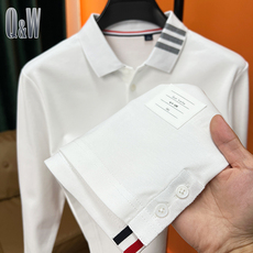 男士高端商务长袖t恤衫纯棉薄款春秋宽松翻领打底polo衫刺绣上衣