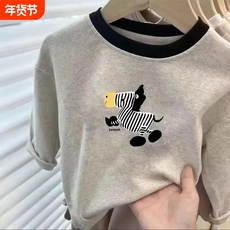 中小儿童韩系洋气时髦百搭长袖T恤秋装男童纯棉薄款宽松打底上衣