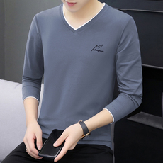 花花公子春秋季薄款男士长袖t恤v领纯棉秋衣上衣鸡心领内衣打底衫