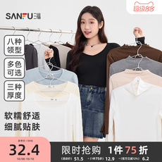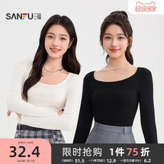 三福打底衫女2025新款秋季方领修身显瘦长袖t恤通勤内搭上衣女装