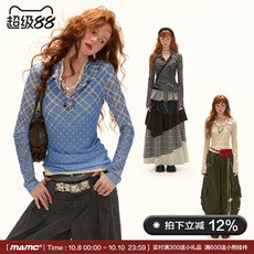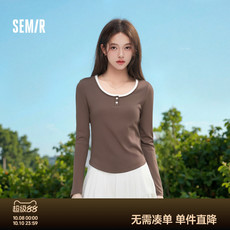 [商场同款]森马长袖T恤女短款显瘦设计感2025新款修身假两件秋装