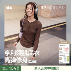 蕉下亨利衫女长袖T恤v领秋冬修身保暖低领打底衫半开领白色上衣