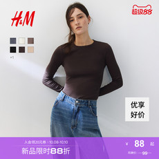 HM女装T恤秋季莫代尔混纺修身显瘦打底衫圆领长袖内搭上衣0999727