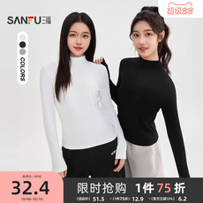 三福长袖T恤2025新款秋季半高领内搭打底衫修身显瘦黑色上衣女装