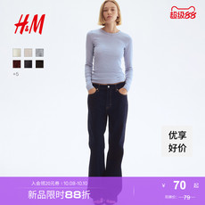 HM女装T恤秋季莫代尔混纺修身显瘦打底衫圆领长袖内搭上衣0999727