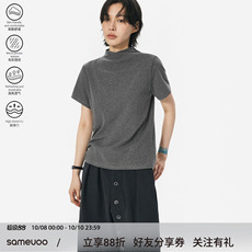 sameuoo散养文化交叉烟囱领正肩长袖T恤秋季中性风基础修身上衣女
