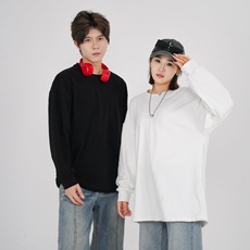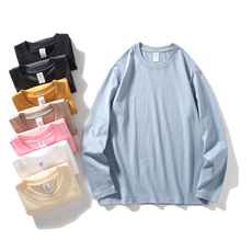 高克重水洗碳磨圆领长袖T恤纯棉男女款春秋宽松休闲百搭情侣上衣