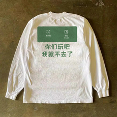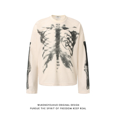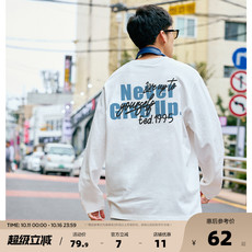 悟空有货美式高街华夫格印花长袖T恤男秋季潮牌情侣宽松百搭上衣