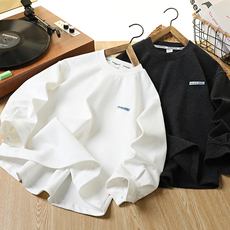 阿叔潮牌 美式纯色圆领长袖T恤男春秋情侣百搭宽松学生休闲打底衫