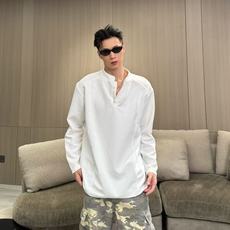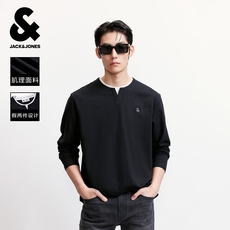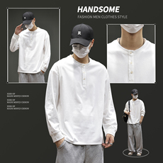 阿叔潮牌 美式纹理感亨利领长袖T恤男春秋柔软百搭宽松休闲打底衫
