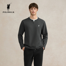 POLOWALK男式长袖T恤2025秋季新品圆领假两件百搭上衣休闲打底衫