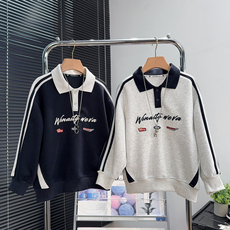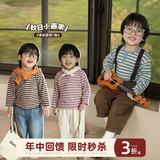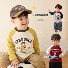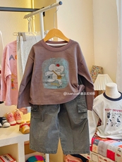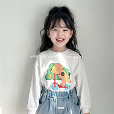 100-150码出口韩秋款男女童中大童三色圆领卡通百搭长袖T恤
