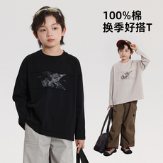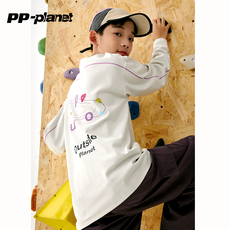 PP星球原创男童【诗柔棉】印花休闲百搭T恤秋款中大童内搭长袖t恤