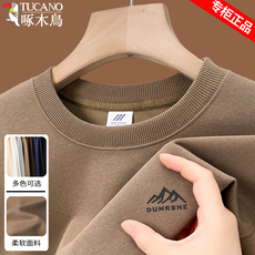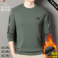 啄木鸟冬季高端男士加绒加厚卫衣圆领休闲保暖长袖T恤百搭打底衫