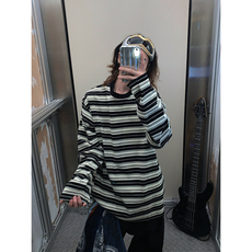 阿荒与阿卤美式复古宽松条纹百搭打底休闲潮流男女2025秋长袖T恤