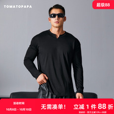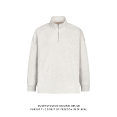 悟空有货潮牌基础纯色重磅半拉链套头长袖T恤男秋季宽松百搭上衣