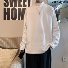 高领纯色T恤男女长袖ins潮流春秋季百搭打底衫韩版宽松休闲上衣服