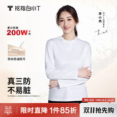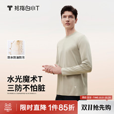 拇指白小T纯棉三防长袖T恤纯色百搭时尚圆领男女款白色体恤衫