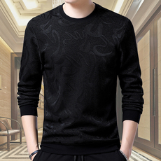 皮尔卡丹秋冬男抗皱免烫长袖t恤圆领卫衣宽松百搭加绒加厚打底衫