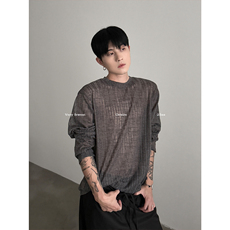 VERY FEWEST 松弛感暗纹微透宽松长袖T恤男女百搭慵懒上衣打底衫