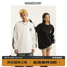 男道美式条纹插肩长袖T恤男女春季新款百搭撞色学院风运动打底衫
