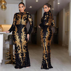 新款亚马逊外贸热销气质修身连衣裙时尚性感露背包臀女士长裙圆领