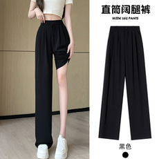 柜子款~女春款百搭高腰显瘦亲肤垂感阔腿直筒休闲小黑裤长裤女裤