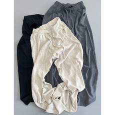 外贸原单 出口德国 纯亚麻橡筋腰休闲素色长裤阔腿裤女裤西裤 4色