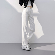 郁香菲纯色牛仔裤女气质通勤夏季时尚高腰休闲女裤显瘦直筒长裤