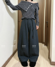 十米田9951呢子西装阔腿裤女2025冬季加厚宽松直筒弯刀休闲长裤子