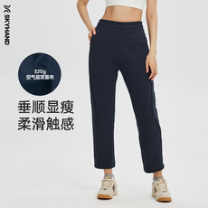 SKYHAND运动裤女小个子宽松休闲裤直筒垂感空气层长裤美拉蓝穿搭