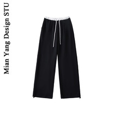 高腰黑色运动裤女2024秋季直筒长裤休闲慵懒宽松百搭抽绳阔腿卫裤