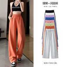 高腰抽绳压褶垂感阔腿裤女秋季大码胖mm宽松显瘦慵懒运动休闲长裤