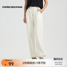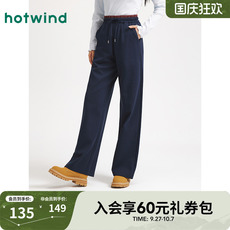 热风女士卫裤2025年秋季新款梭织松紧腰休闲直筒显瘦阔腿休闲长裤