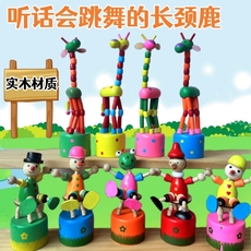 长颈鹿木偶摇摆站桶木制动物手指玩偶公仔玩具迷你可爱跳舞小丑人