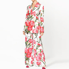 高级感康乃馨印花套装2026新款欧美名媛走秀气质西装阔脚裤两件套