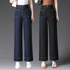 九分阔腿牛仔裤女2025年新款弹力显瘦妈妈裤宽松修身阔脚裤子秋季