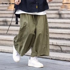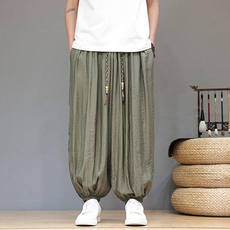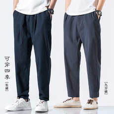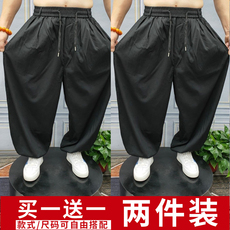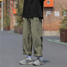 垂感松紧腰哈伦九分萝卜裤男生夏季宽松直筒阔腿运动束脚灯笼裤子