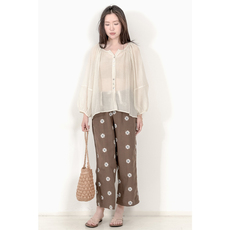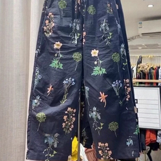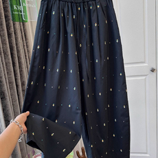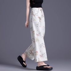 KNgs 夏季复古小众碎花刺绣天丝亚麻薄款九分直筒阔腿裤休闲裤女